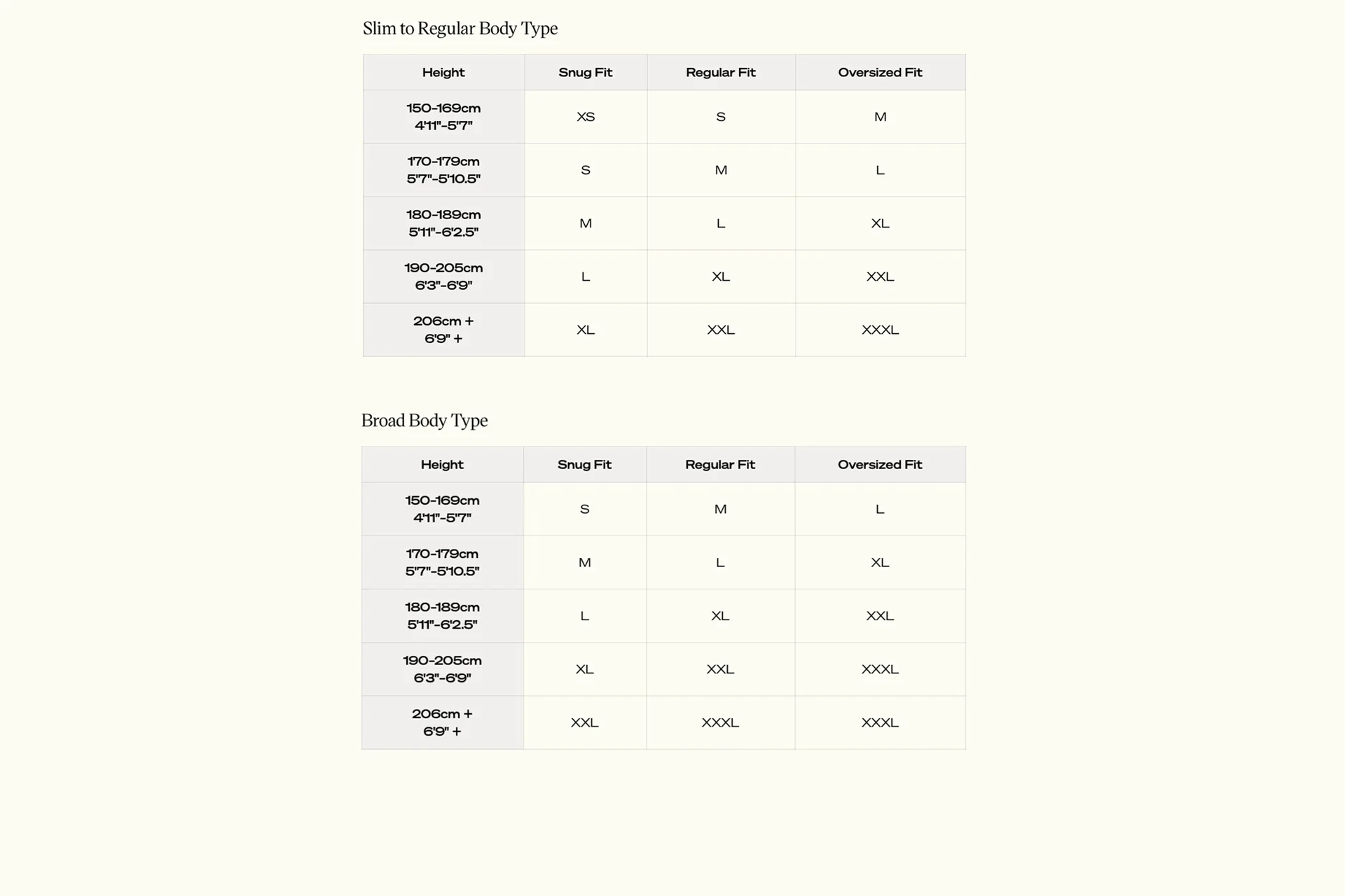 Please use our Size Finder located on each product page, that will help you find the right size based on your measurements and fit preferences.